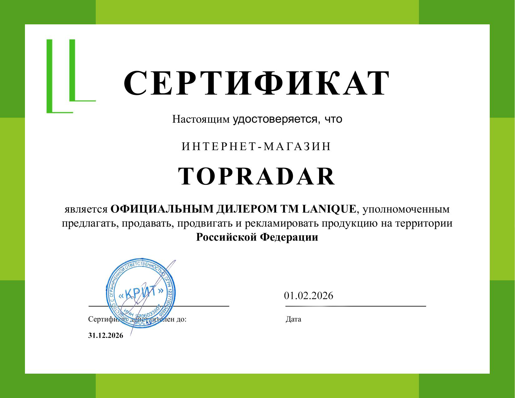 ТопРадар — официальный дилер 90% брендов из ассортимента. Остальные 10% закупаются напрямую у представителей бренда в России. Это означает наличие технической поддержки и гарантии на продукцию.