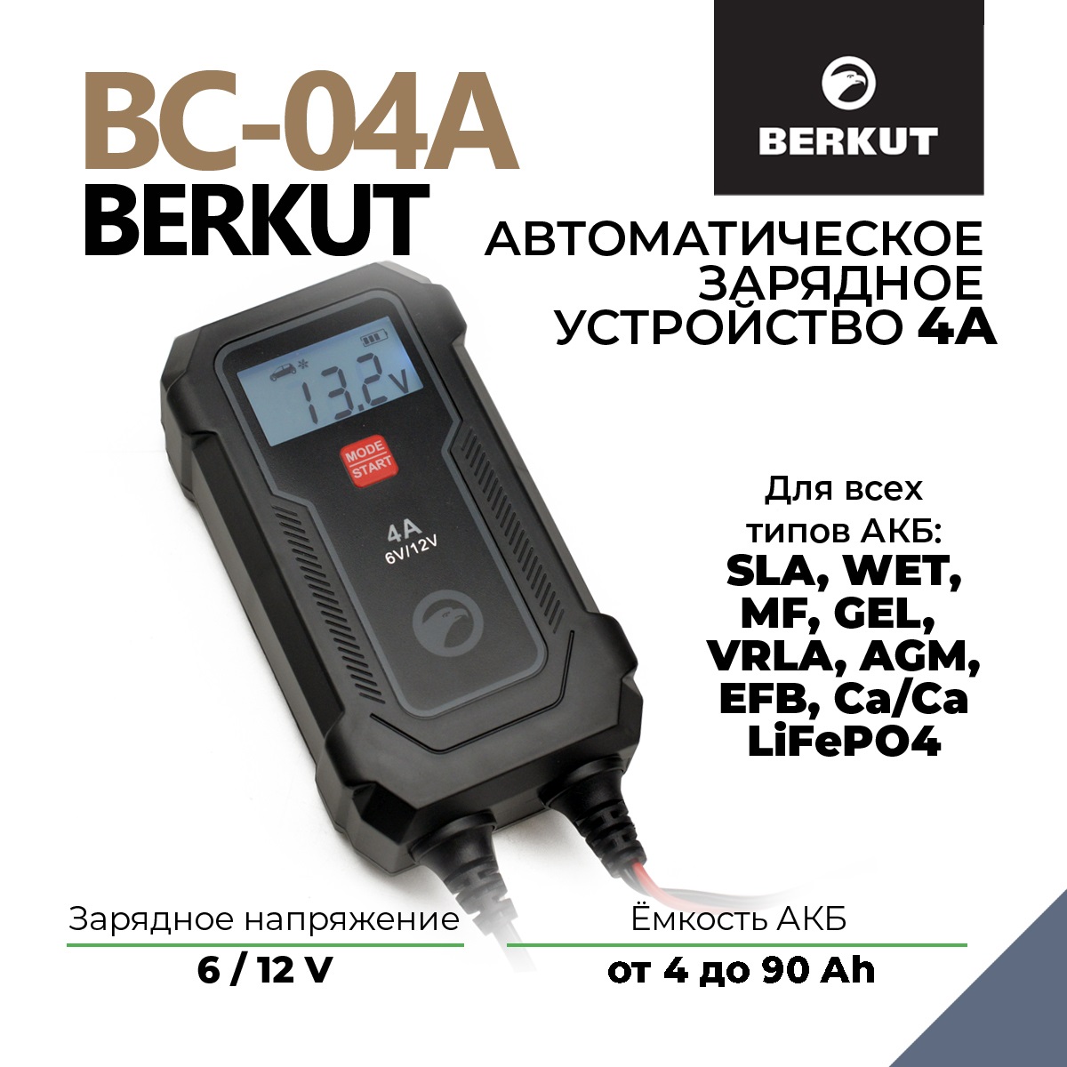 Автоматическое зарядное устройство с диагностикой АКБ BERKUT BCA-4
