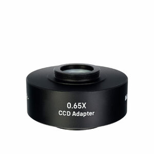 Увеличение адаптера равно 0,65х. Максимальное поле зрения без виньетирования можно получить на сенсорах размером от 1/1,8" до 1/1,2".