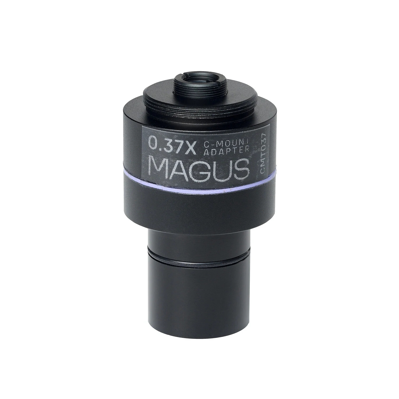 Увеличение адаптера равно 0,37х. Максимальное поле зрения без виньетирования можно получить на сенсорах размером от 1/4" до 1/3".