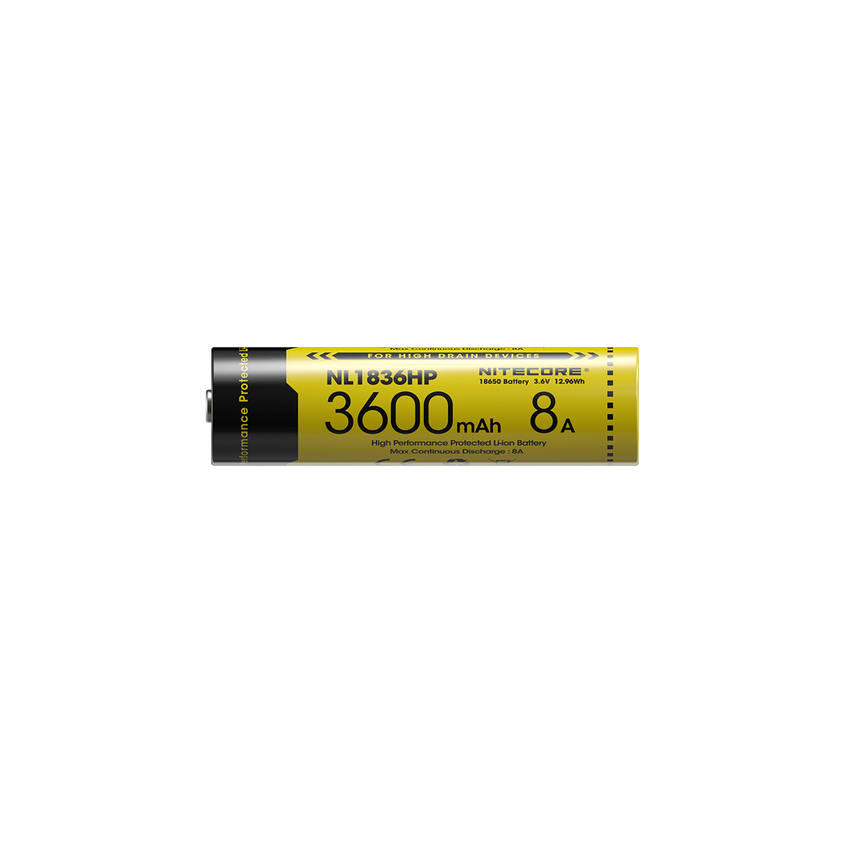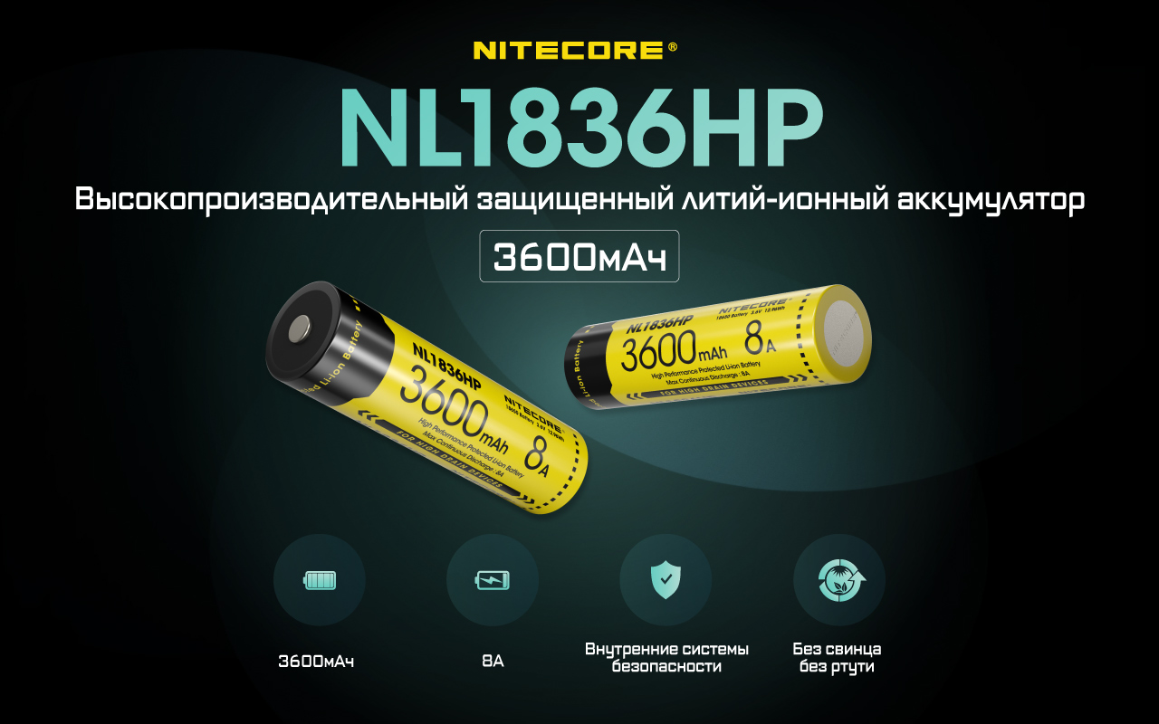 NL1836HP рассчитан на 500 полных циклов разряда и заряда. Также совместим с большинством фонарей, которые работают на источнике питания типоразмера 18650.