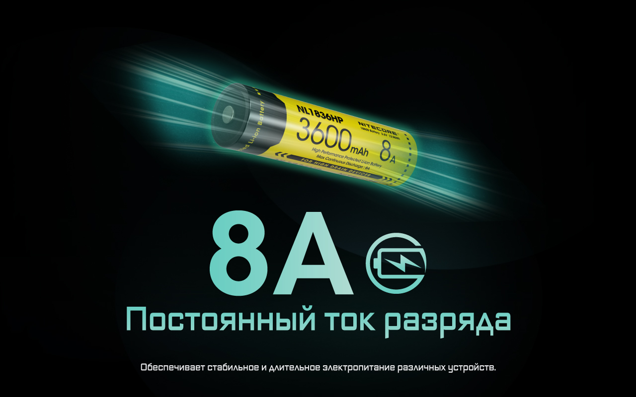 Аккумулятор NITECORE NL1836HP 18650 3.6v 3600mAh Li-ion 3.6v 8A 16890