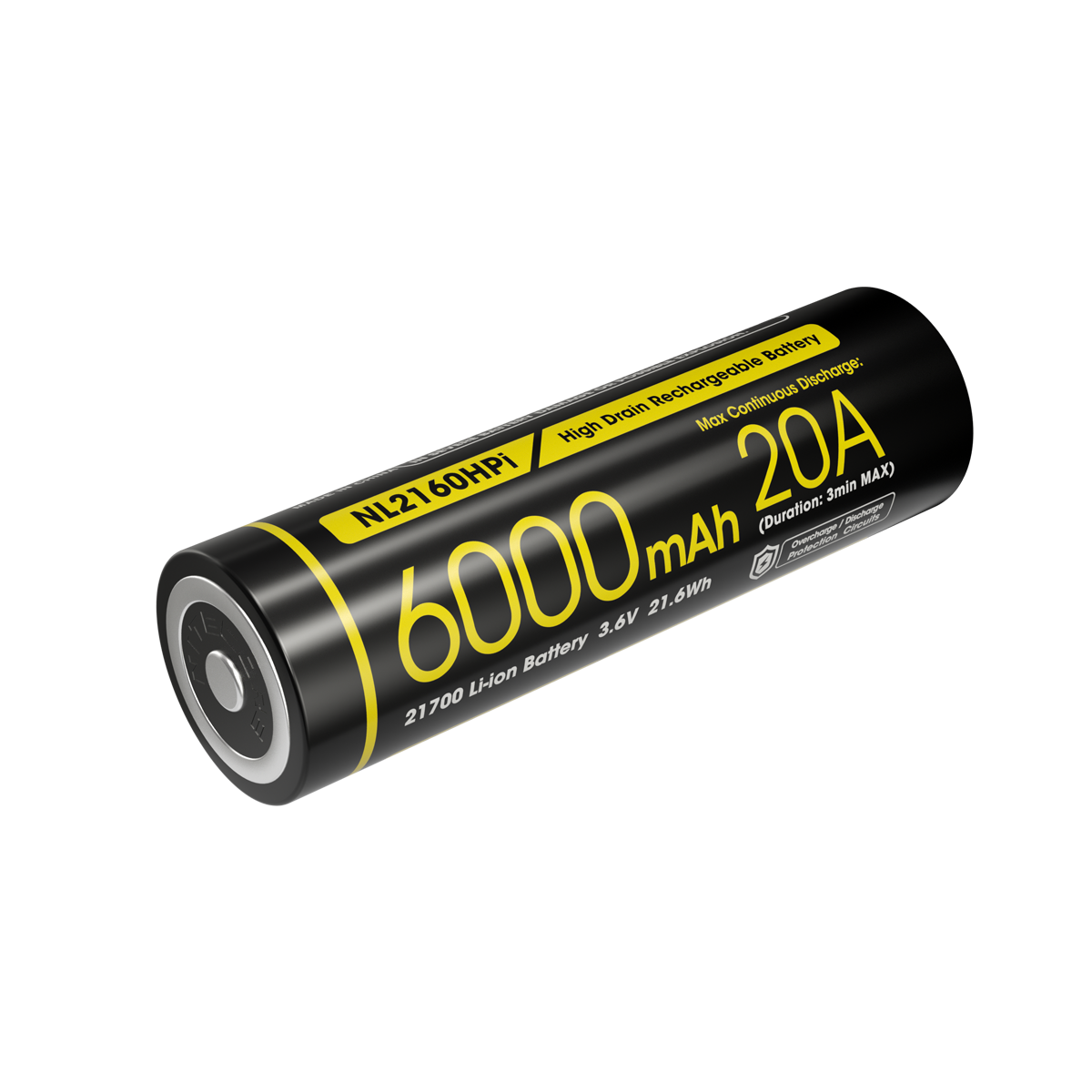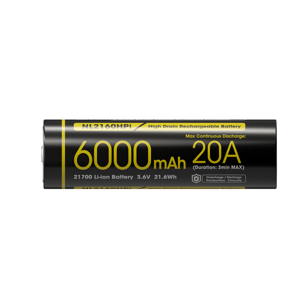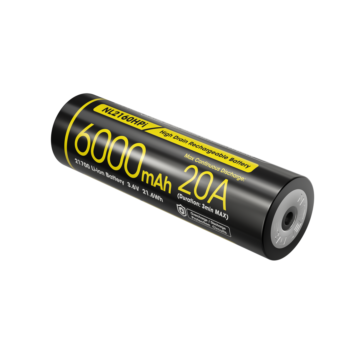 Новый аккумулятор Nitecore NL2160HPi типоразмера 21700 емкостью 6000 мАч. Питание 3,6 вольт.