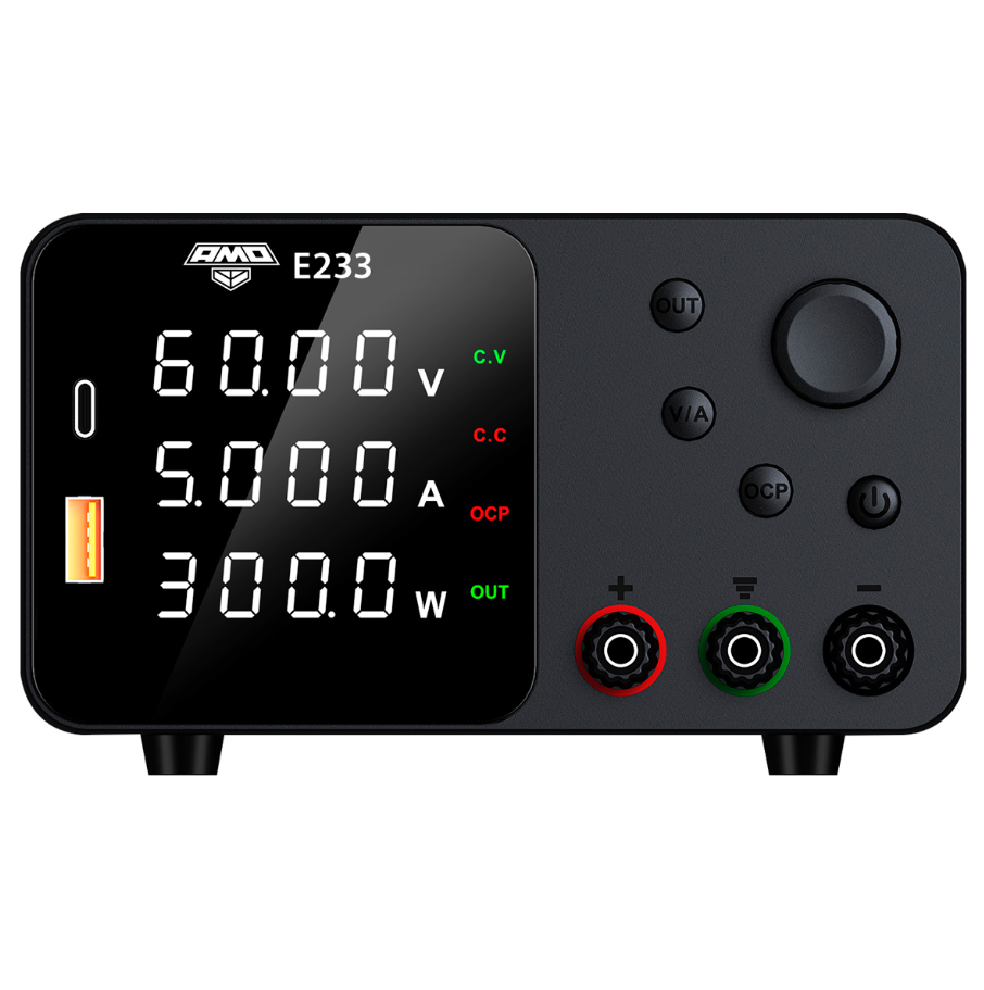 Защита от перегрузки по току (OCP) активируется при превышении установленного лимита, мгновенно ограничивая ток и предотвращая перегрев или пробой компонентов. AMO E233 должен быть заземлен, чтобы исключить риск поражения электрическим током — это особенно актуально при работе с напряжениями выше 30 В.