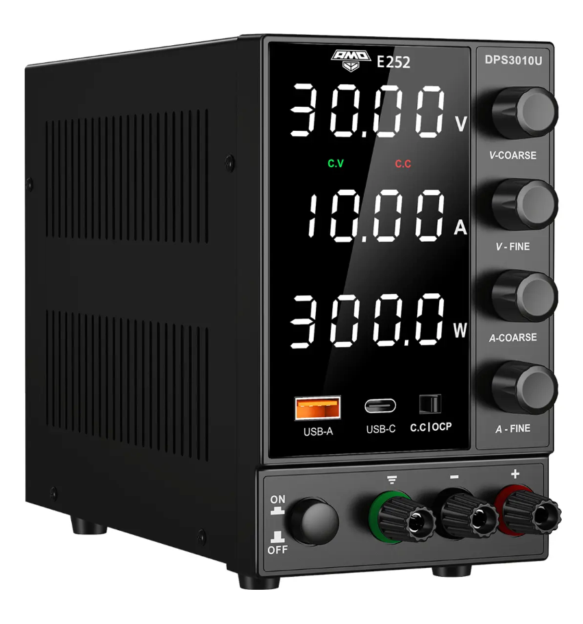 - Напряжение: 0,01–30 В, ток: 0,001–10 А, мощность до 300 Вт
