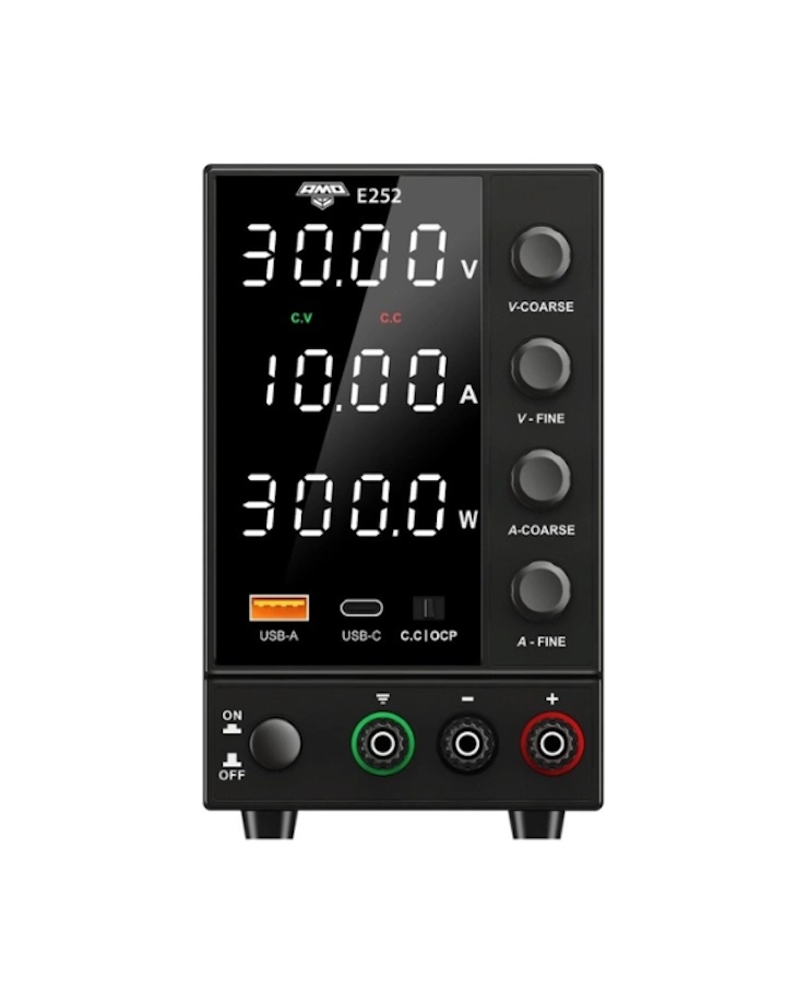 Источник питания AMO E252 — это усовершенствованная версия модели E251 с увеличенным диапазоном выходного тока до 10 А. Он идеально подходит для тестирования мощных усилителей, двигателей постоянного тока, светодиодных матриц, радиостанций и другого оборудования, требующего высокого потребления энергии. Благодаря максимальной выходной мощности 300 Вт, автоматическому режиму стабилизации и надежной защите, модель популярна у профессионалов в сервисных центрах, производстве и НИИ.