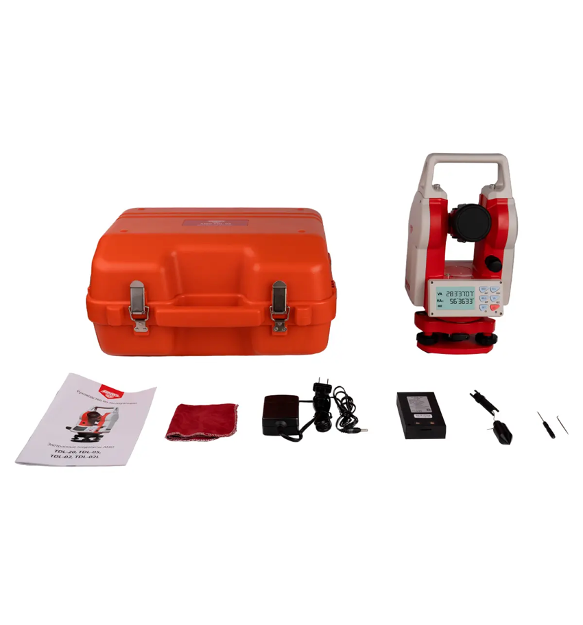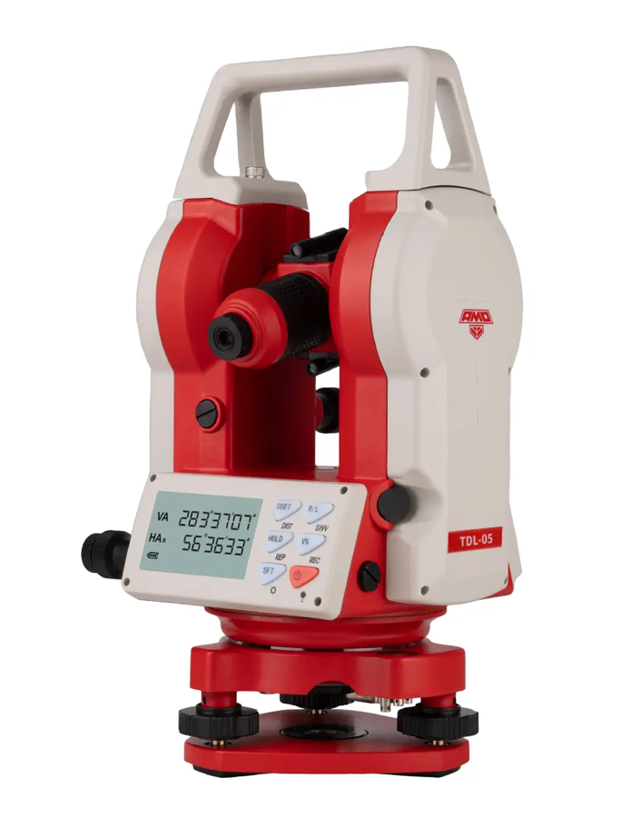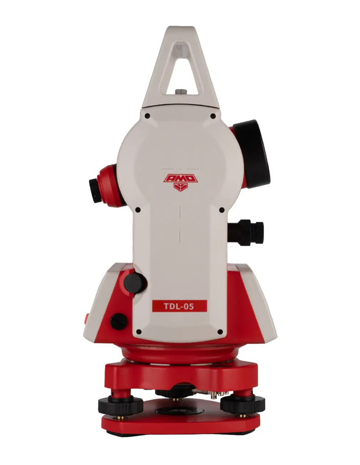 Электронный теодолит AMO TDL-05 относится к геодезическим инструментам точного класса, обеспечивая определение величины горизонтальных и вертикальных углов и уклонов с погрешностью не более 5 секунд. Для считывания показаний используется фотоэлектрическая система с цифровой обработкой данных и отображением результатов в числовом виде на ЖК-дисплее, что повышает производительность работ и упрощает использование прибора лицами с недостаточным опытом. Наличие встроенного в зрительную систему нитяного дальномера дает возможность, помимо выполнения угловых измерений, дополнительно определять расстояния с помощью нивелирной рейки.