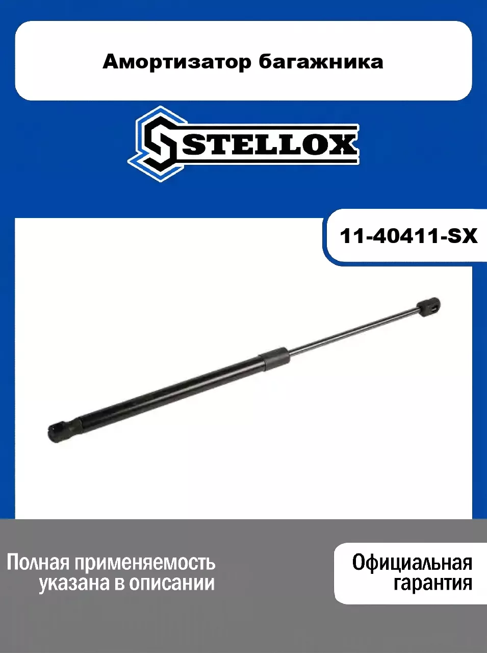 Амортизатор багажника STELLOX, артикул 11-40411-SX. Автозапчасть категории «амортизаторы багажника» для ремонта и обслуживания автомобиля. Способствует корректной работе подвески, снижению вибраций и комфортной эксплуатации автомобиля. Перед покупкой рекомендуем сверить совместимость по VIN-коду.