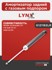 Амортизатор задний с газовым подпором LYNXauto G121182LR. Применение: AUDI A3 13>, SKODA Octavia(5E) 12>, VW Golf VII 12>