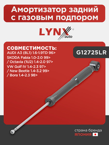 Амортизатор задний с газовым подпором LYNXauto G12725LR. Для: VW, Фольксваген, Golf(Гольф) IV 1.4-2.3 97> / Bora(Бора) 1.4-2.3 98> / New Beetle 1.4-3.2 99> / Audi, Ауди A3 (8L1) 1.6-1.9TD 96>.