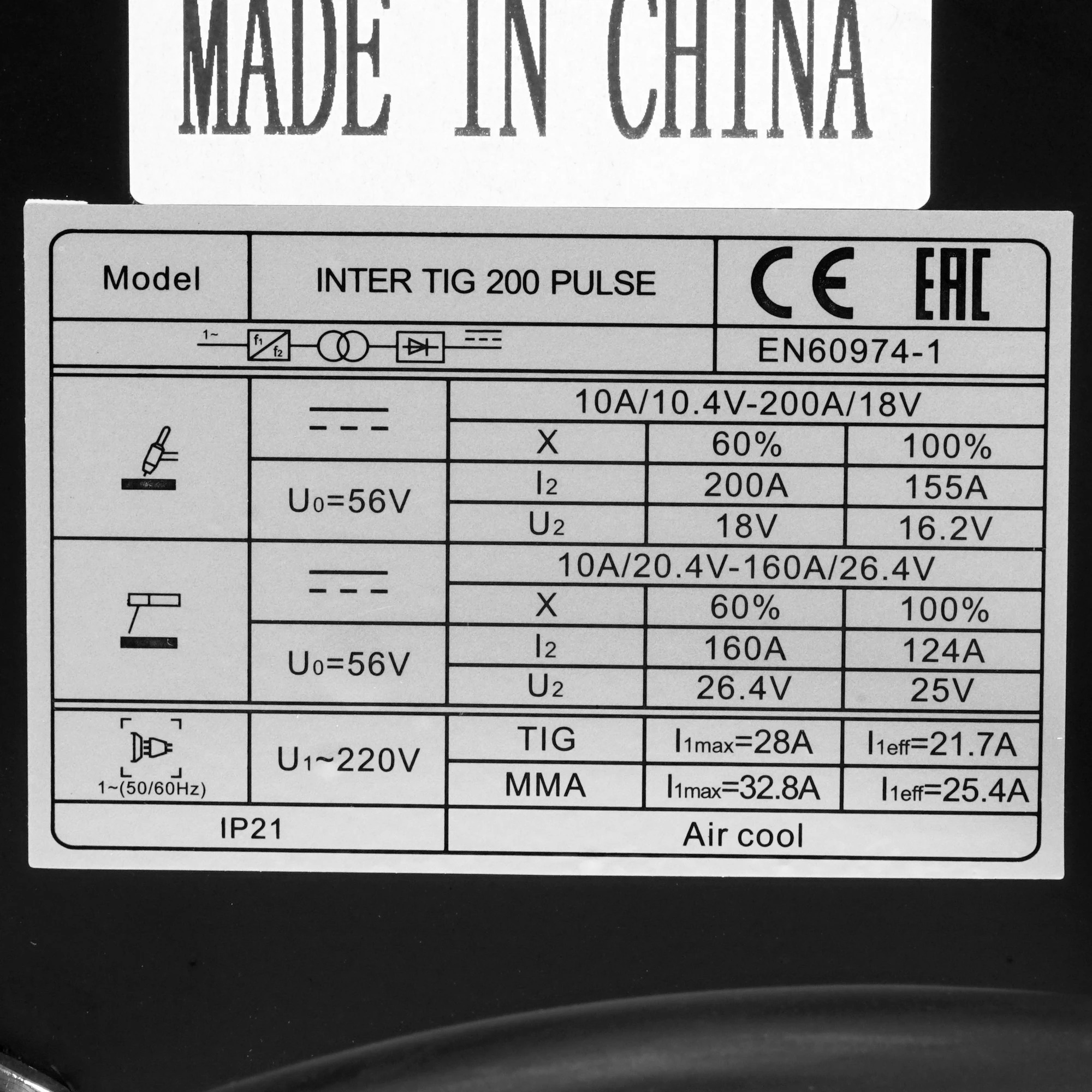 INTER TIG 200 PULSE - максимально функциональный и удобный в эксплуатации аппарат на 220В. Предназначен для профессиональной аргонодуговой сварки TIG постоянным током DC, и для полноценной сварки штучным электродом MMA.