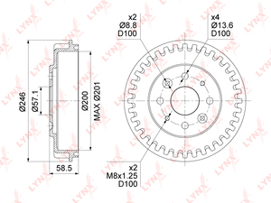 Барабан тормозной (200x42) LYNXauto BM-1081. Применение: KIA Cerato/Spectra I 04> / Shuma/Sephia 95>