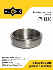 Барабан тормозной (203x43) SUFIX FY-1238. Применение: NISSAN Almera Classic 06>.