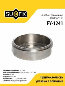 Барабан тормозной (228,5x51,4) SUFIX FY-1241
