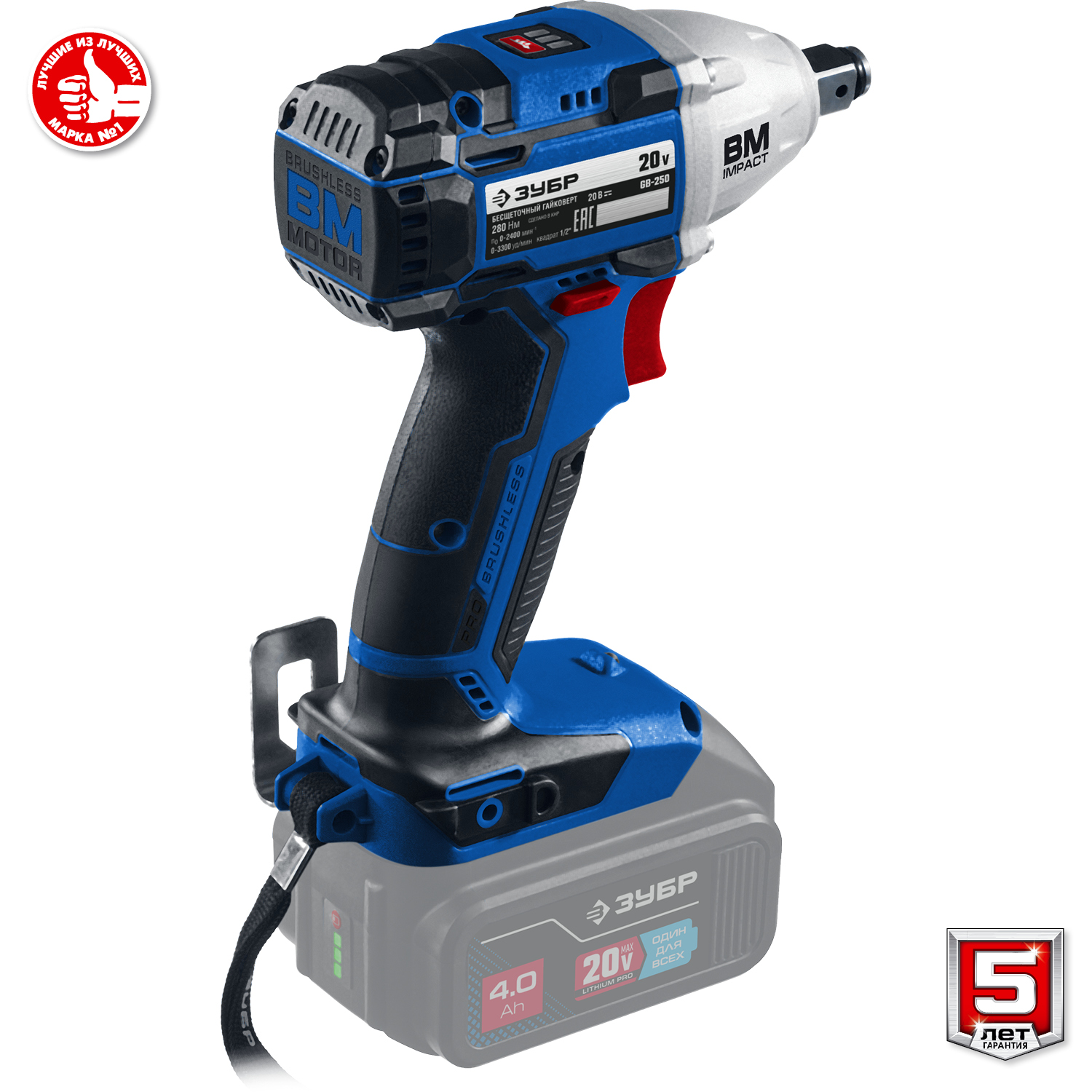 Бесщеточный гайковерт ЗУБР Т7, 20 В, 280 Н·м, без АКБ, Профессионал (GB-250)