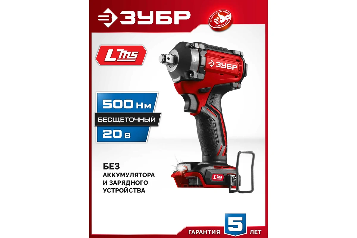 Бесщеточный ударный гайковерт ЗУБР 20 В, 500 Н·м, без АКБ (LMS), (ГБУ-500)