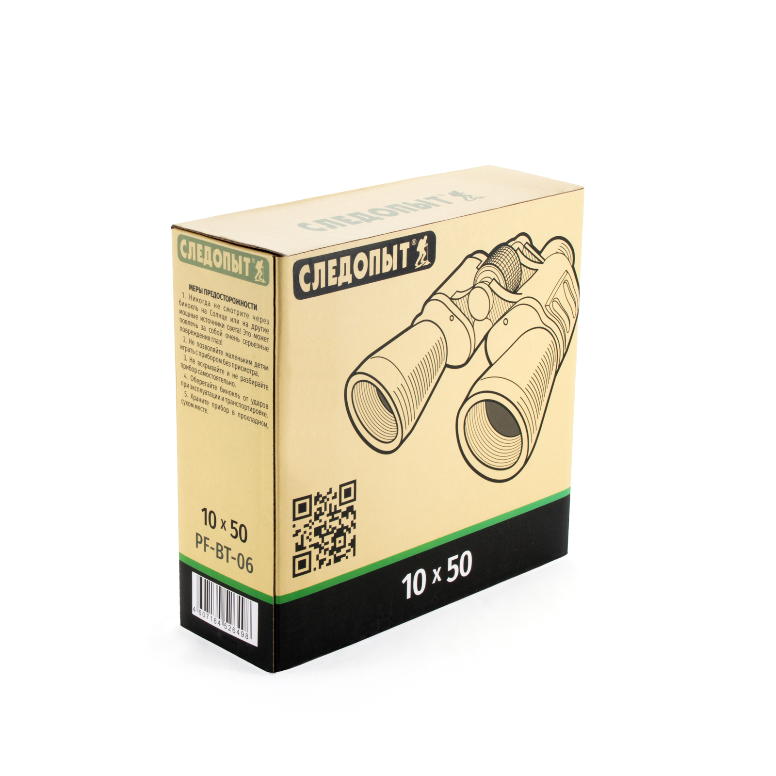 Бинокль СЛЕДОПЫТ, 10х50, зеленый-защитный, 180*85*180 мм, 660 гр., в чехле