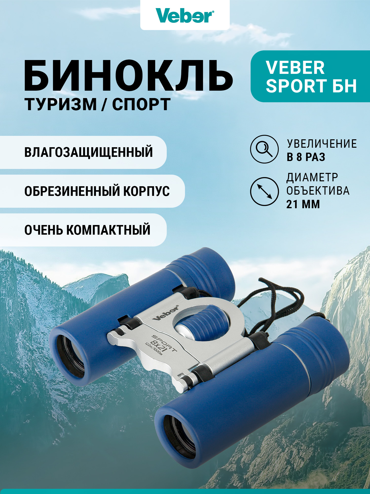 Бинокль Veber Sport БН 8х21, синий