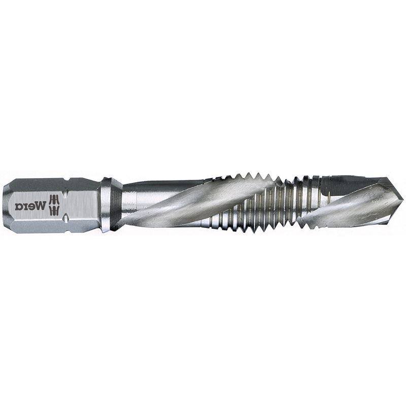 Высококачественный комбинированный метчик для сверления, нарезания резьбы и зачистки. Из быстрорежущей стали (HSS). Оптимально подобранная упругость металла гарантирует большой срок службы инструментов. Отличные параметры центровки, хороший отвод стружки и низкая опасность перекоса обеспечивают комфортную работу. Очень хорошая передача усилий с помощью шестигранного хвостовика. Шестигранный хвостовик 1/4", подходит для держателя по стандарту DIN ISO 1173-D 6,3.