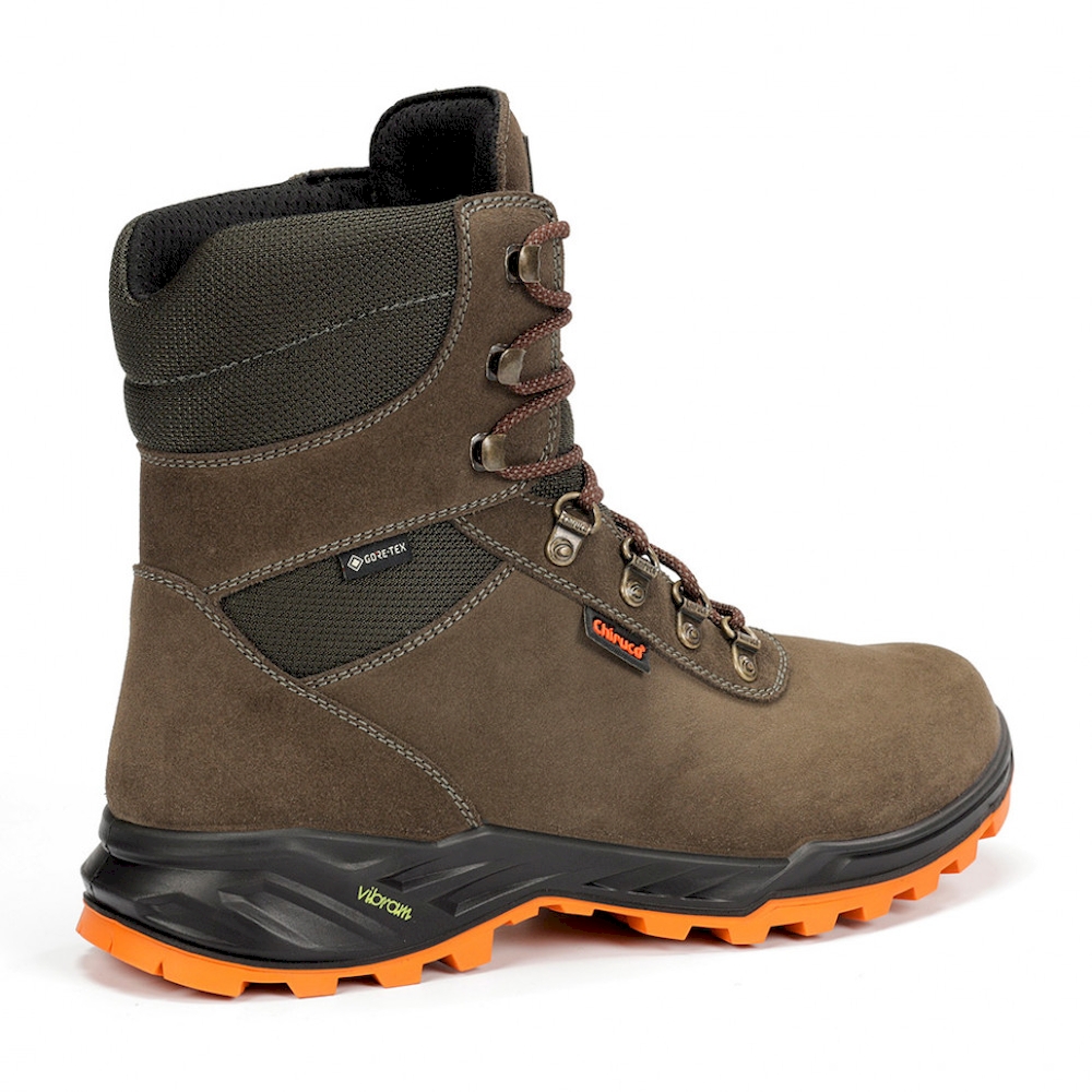 Высокие непромокаемые ботинки Chiruca Malviz с мембраной Gore-Tex и подошвой Vibram для охотников, любителей треккинга и активного отдыха на природе. Подходят для всех типов местности, разработаны с учетом дополнительной сигнализации партнерам по охоте о своем местонахождении (оранжевая подошва). Верх выполнен из водоотталкивающей натуральной кожи (спилка). Оголовье ботинка – из водотталкивающей кордуры, которая придает мягкость, комфорт и защищает от влаги. Дышащая водонепроницаемая мембрана Gore-Tex Performance Comfort обеспечивает отличную защиту от воды и обладает высокими показателями пароотводности. Подошва Chiruca Malviz двухслойная. Внешний слой – Vibram Impulse Hi Vis из натурального каучука совмещает гибкость с износостойкостью и отличным сцеплением на любой поверхности. Внутренний слой (промежуточная подошва) из полиуретана своими амортизационными свойствами максимально защищает суставы от нагрузок. Съемная стелька состоит из двух слоев различной плотности. Эта комбинация обеспечивает дополнительное удобство. Влага отводится в нижний пористый слой стельки, а антибактериальная пропитка предотвращает появление неприятного запаха. Ботинок дополнительно усилен специальным резиновым слоем на мысе. Перечисленные технологии делают обувь очень долговечной, надежной и удобной.