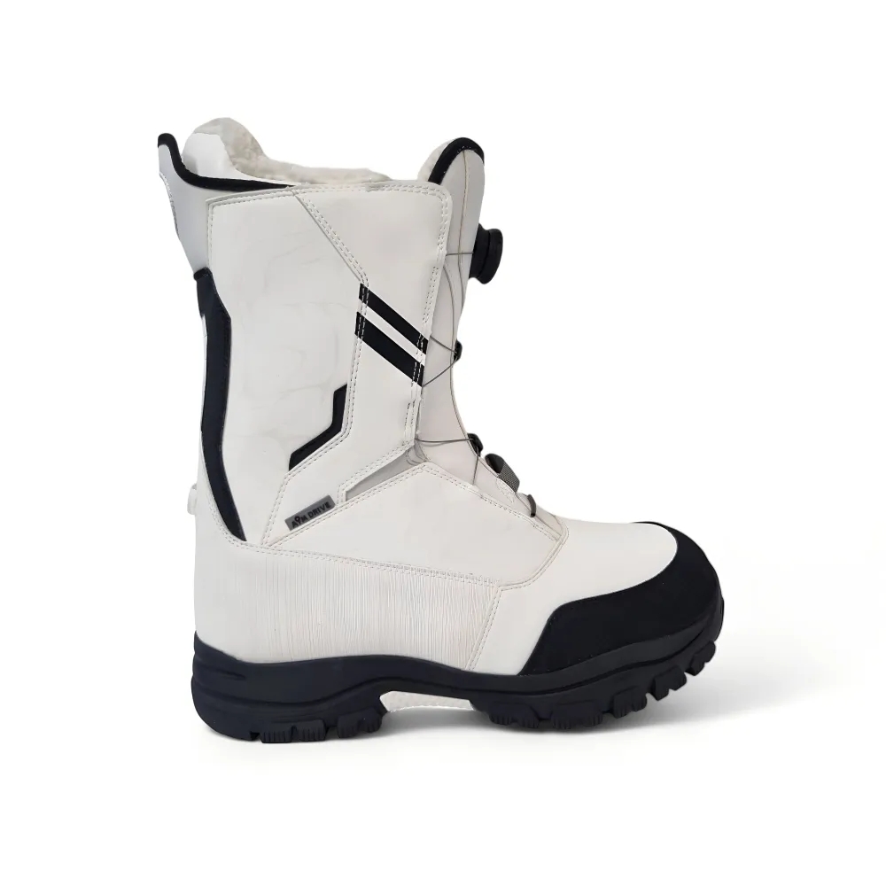 Металлическая леска обеспечивает надёжное крепление обуви - не растягивается и не деформируется со временем, в отличии от пластиковых и нейлоновых, что гарантирует долговечность системы. Ботинки изготовлены из прочных материалов, которые устойчивы к износу и повреждениям. Мембрана AiM-WP внутри ботинок обеспечивает отличную вентиляцию и защиту от влаги, позволяя ногам «дышать» и предотвращает образование конденсата. Это особенно важно при активном движении, когда ноги потеют. Снегоходные ботинки имеют удобную посадку и поддержку стопы.
