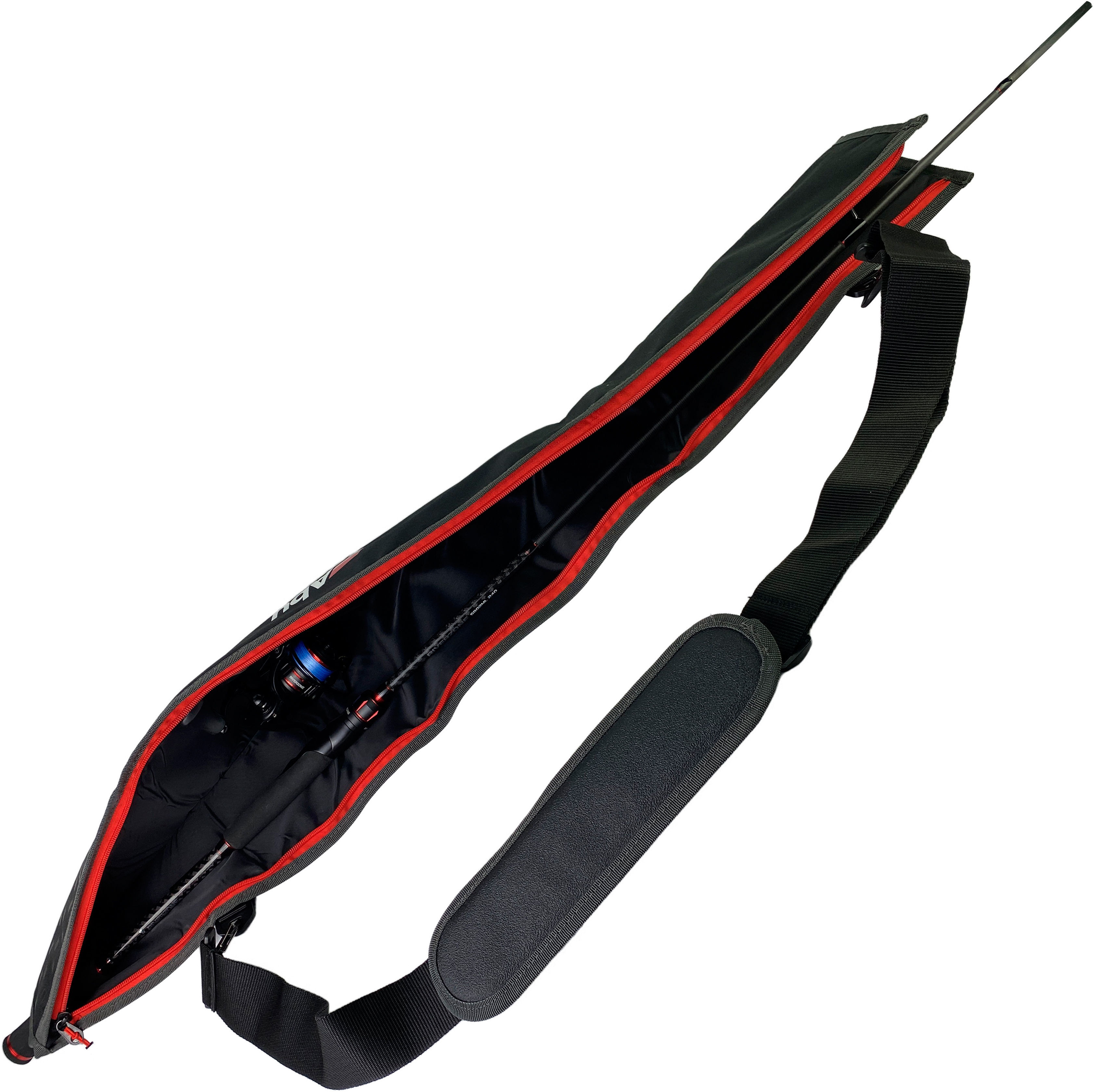 Чехол изготовлен из мягкого и прочного нейлона, амортизирующего удары и вибрации, который гарантирует защиту удилища от царапин, повреждений и других внешних воздействий. Размеры чехла составляют 1040x250x30 мм, что позволяет вместить несколько удилищ стандартного размера, оснащенных катушками. Плечевой ремень способствует удобной переноске аксессуара, а мягкая накладка предотвращает натирание в области шеи, позволяя носить чехол без дискомфорта долгое время. Модель также имеет удобную застежку-молнию, которая обеспечивает быстрый доступ к содержимому.