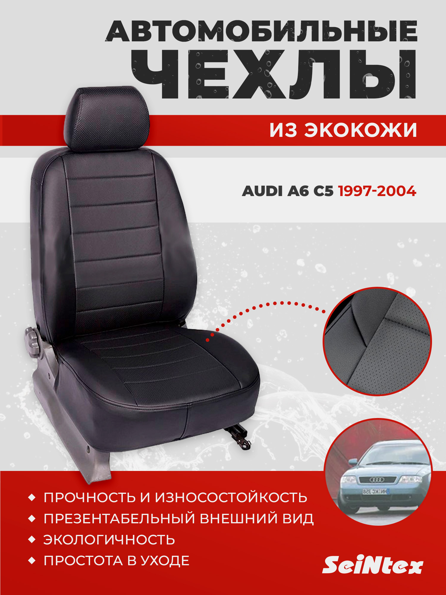 Чехлы из экокожи Seintex для Audi A6 C5 1997-2004 (черные, 93585)