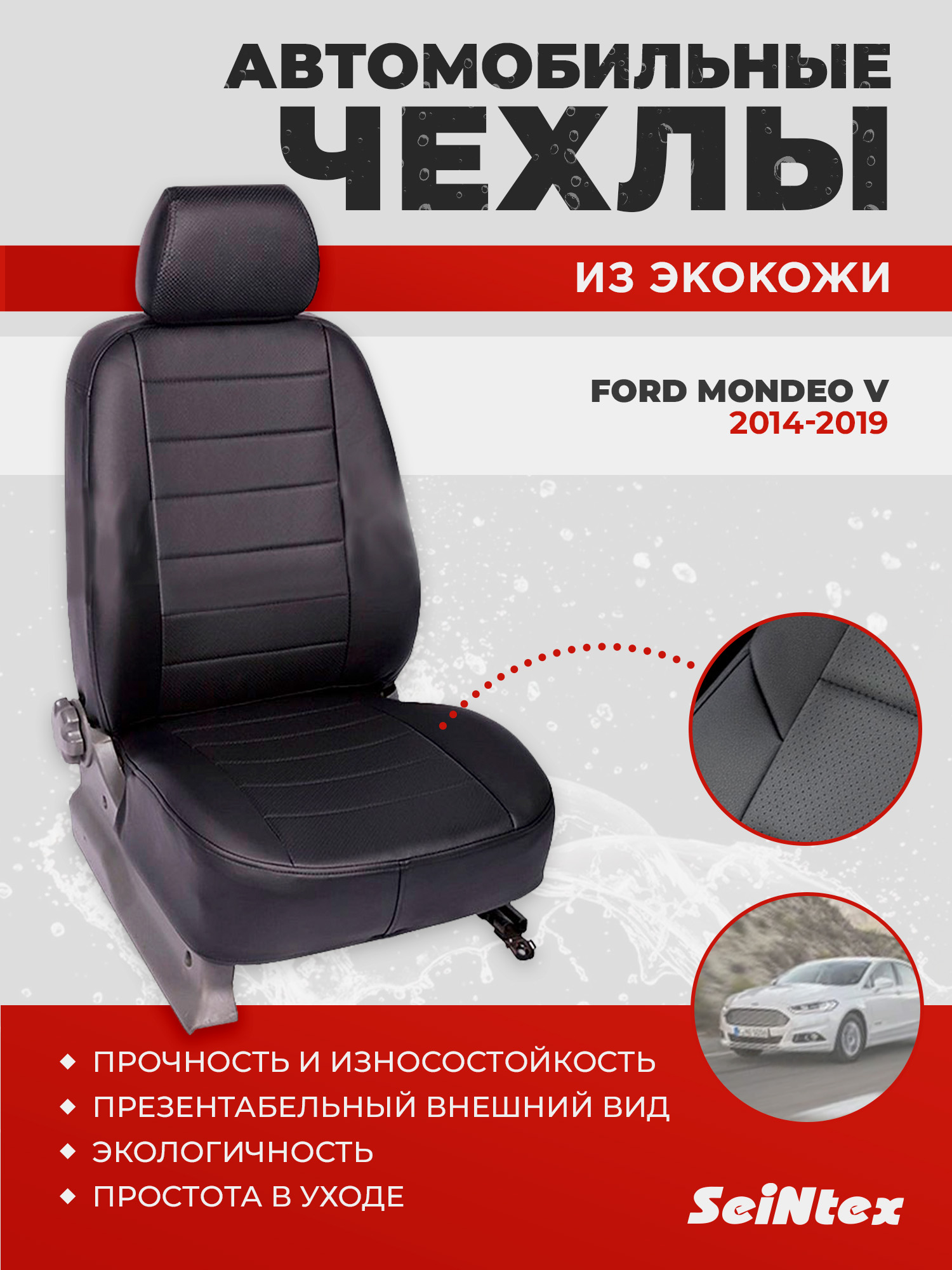 Чехлы из экокожи Seintex для Ford Mondeo V 2014-2019 (черные, 86874)