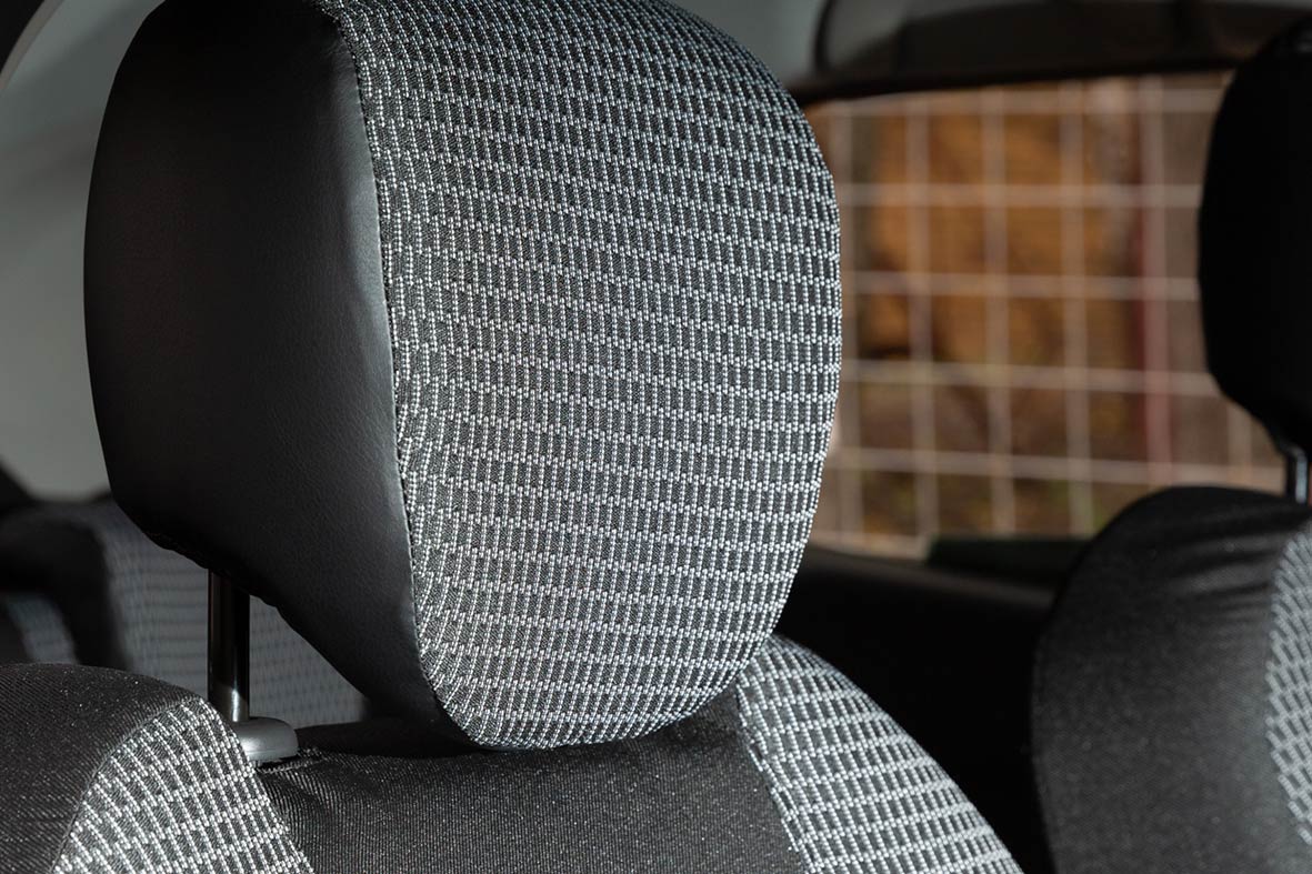 - Идеальное соответствие форме сидений и подголовников. Все автомобильные чехлы, выполненные из жаккардовой ткани, изготавливаются под определенный автомобиль с учетом особенностей линий салона.