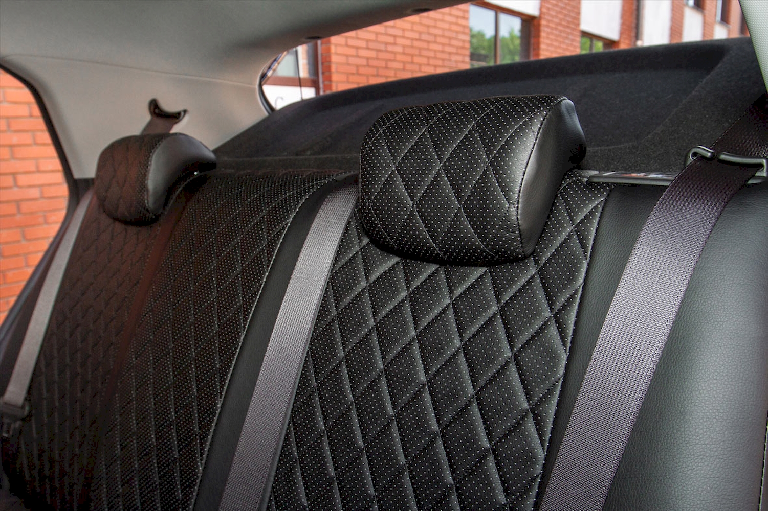 - Презентабельный внешний вид. Чехлы, изготовленные из экокожи, выглядят элегантно и стильно. Благодаря чехлам салон автомобиля приобретает и респектабельный внешний вид.