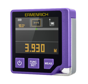 Цифровой уровень с лазерной рулеткой «3 в 1» Ermenrich Verk LQ60 – это многофункциональный инструмент, созданный для выполнения высокоточных замеров при проведении ремонтно-строительных и монтажных работ. Прибор способен измерять расстояния в широком диапазоне от 5 см до 100 м с минимальной погрешностью (±3 мм), проводить расчеты по формулам и опрелелять угол наклона в режиме абсолютных измерений. Также прибор имеет функцию элекронного пузырькового дисплея.