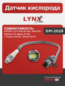 Датчик кислорода LYNXauto DM-2029. Для: Infiniti, Инфинити, 4.5 FX45 00-08 / M45 05>, Nissan, Ниссан, 3.5 Altima 01-06 / Murano(Мурано) 03-08 / Quest 03-07.