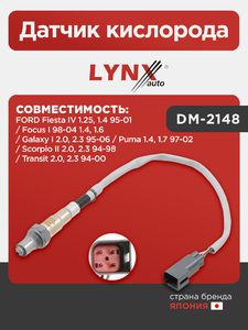 Датчик кислорода LYNXauto DM-2148. Для FORD ФОРД Fiesta IV 1.25, 1.4 95-01/Focus(Фокус) I 98-04 1.4, 1.6/Galaxy I 2.0, 2.3 95-06/Puma 1.4, 1.7 97-02/Scorpio II 2.0, 2.3 94-98/Transit(Транзит) 2.0, 2.3 94-00