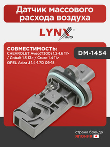Датчик массового расхода воздуха LYNXauto DM-1454. Для: Chevrolet, Шевроле, Aveo(Авео)(T300) 1.2-1.6 11> / Cobalt(Кобальт) 1.5 13> / Cruze(Круз) 1.4 11>, Opel, Опель, Astra(Астра) J 1.4-1.7D 09-15.