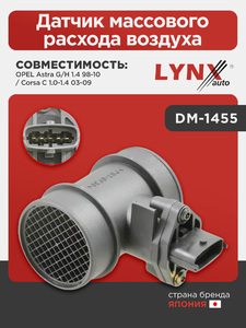Датчик массового расхода воздуха LYNXauto DM-1455. Применение: OPEL Astra G/H 1.4 98-10 / Corsa C 1.0-1.4 03-09.