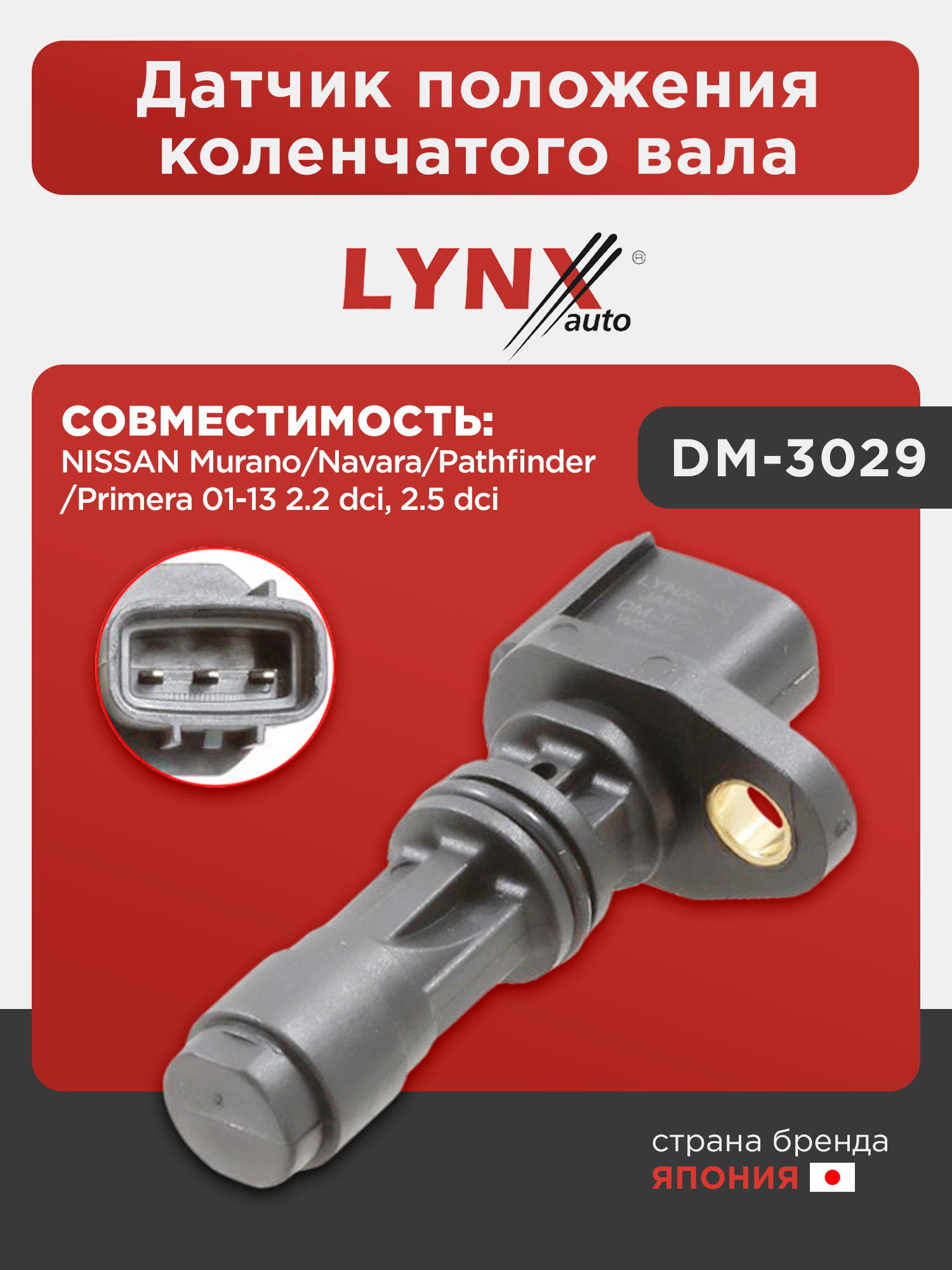 Датчик положения коленчатого вала LYNXauto DM-3029. Для NISSAN Ниссан Murano(Мурано)/Navara/Pathfinder(Пасфайндер)/Primera(Примера) 01-13 2.2 dci, 2.5 dci