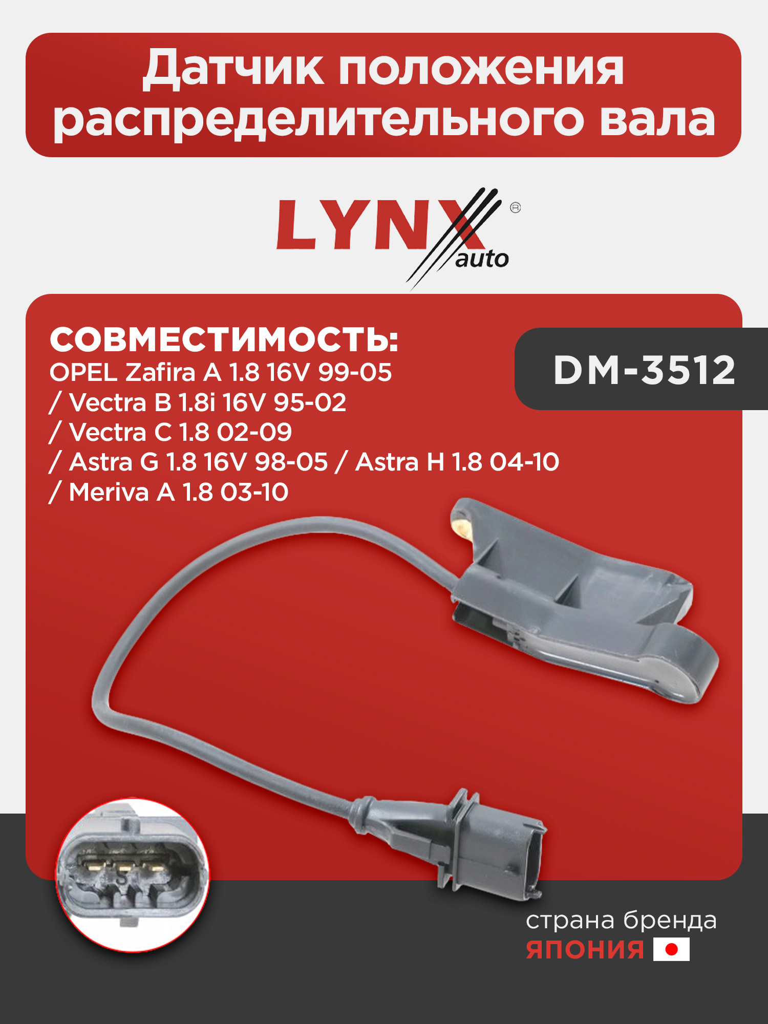 Датчик положения распределительного вала LYNXauto DM-3512. Для OPEL Astra G 1.8 16V 98-05 / Astra H 1.8 04-10 / Meriva A 1.8 03-10 / Vectra B 1.8i 16V 95-02 / Vectra C 1.8 02-09 / Zafira A 1.8 16V 99-05