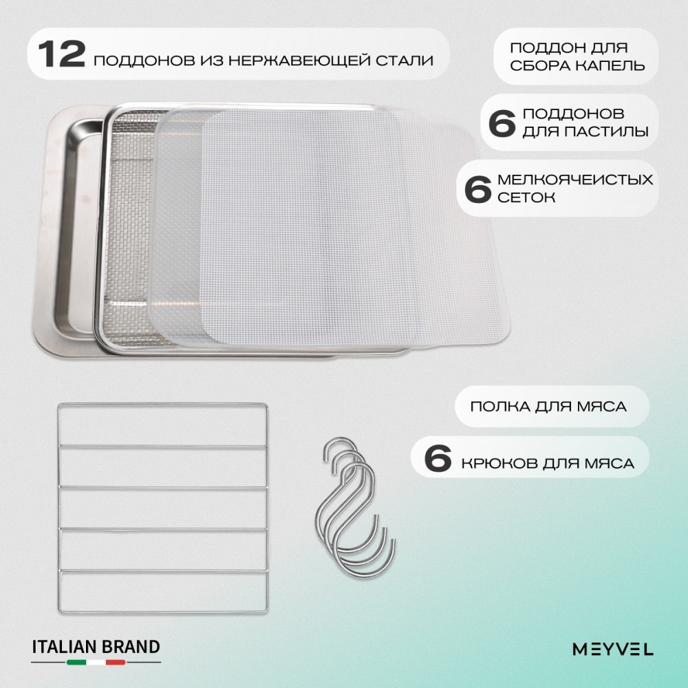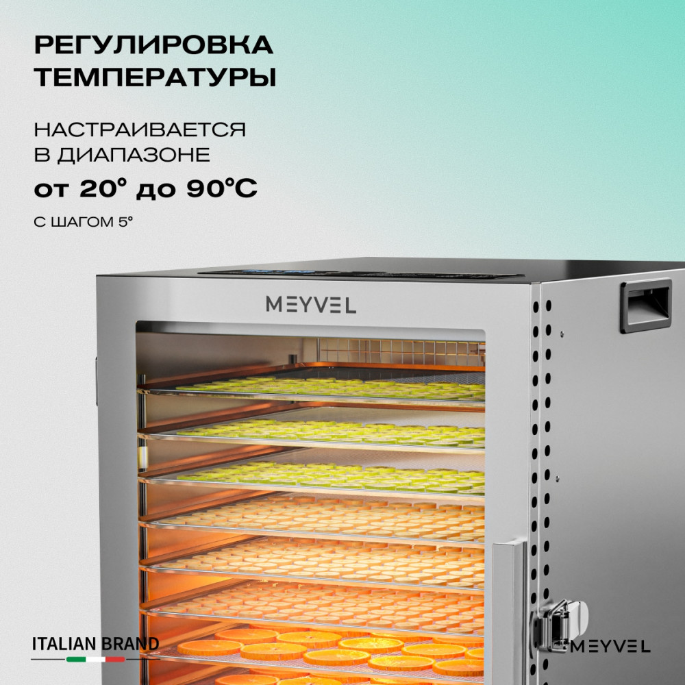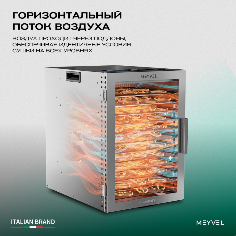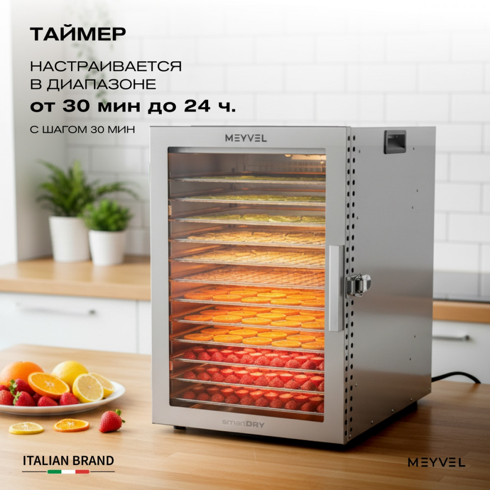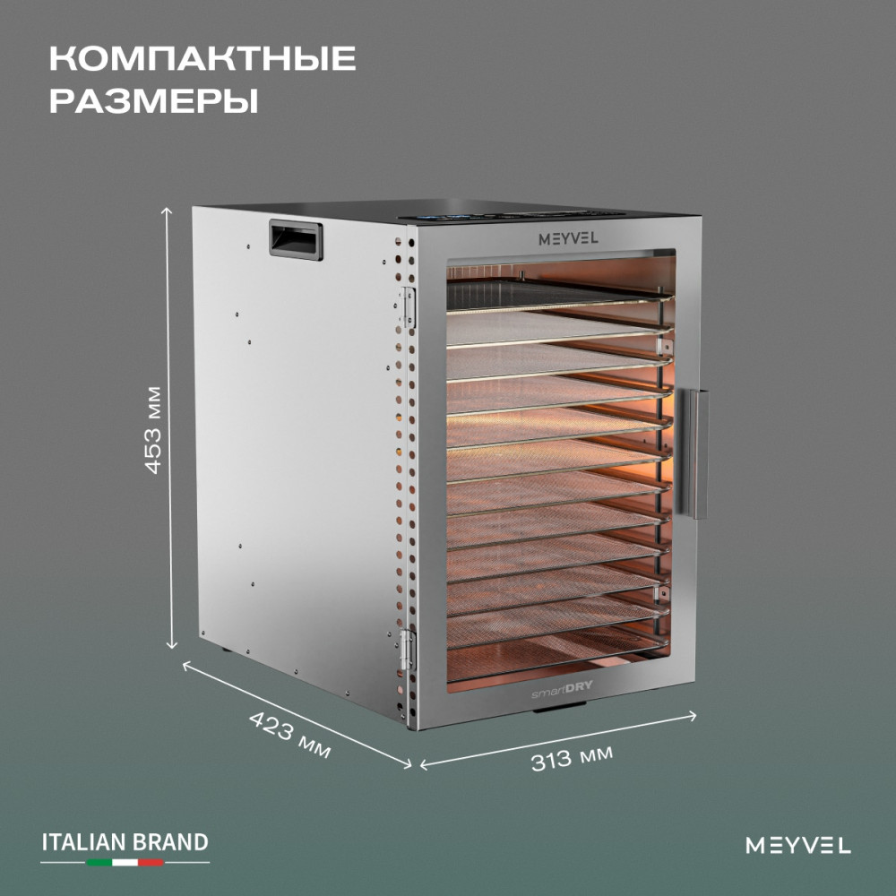 Meyvel MDH12-1S (Нержавеющая Сталь) (Inox) — это профессиональный дегидратор, который объединяет технологичность, практичность и бережное отношение к продуктам.