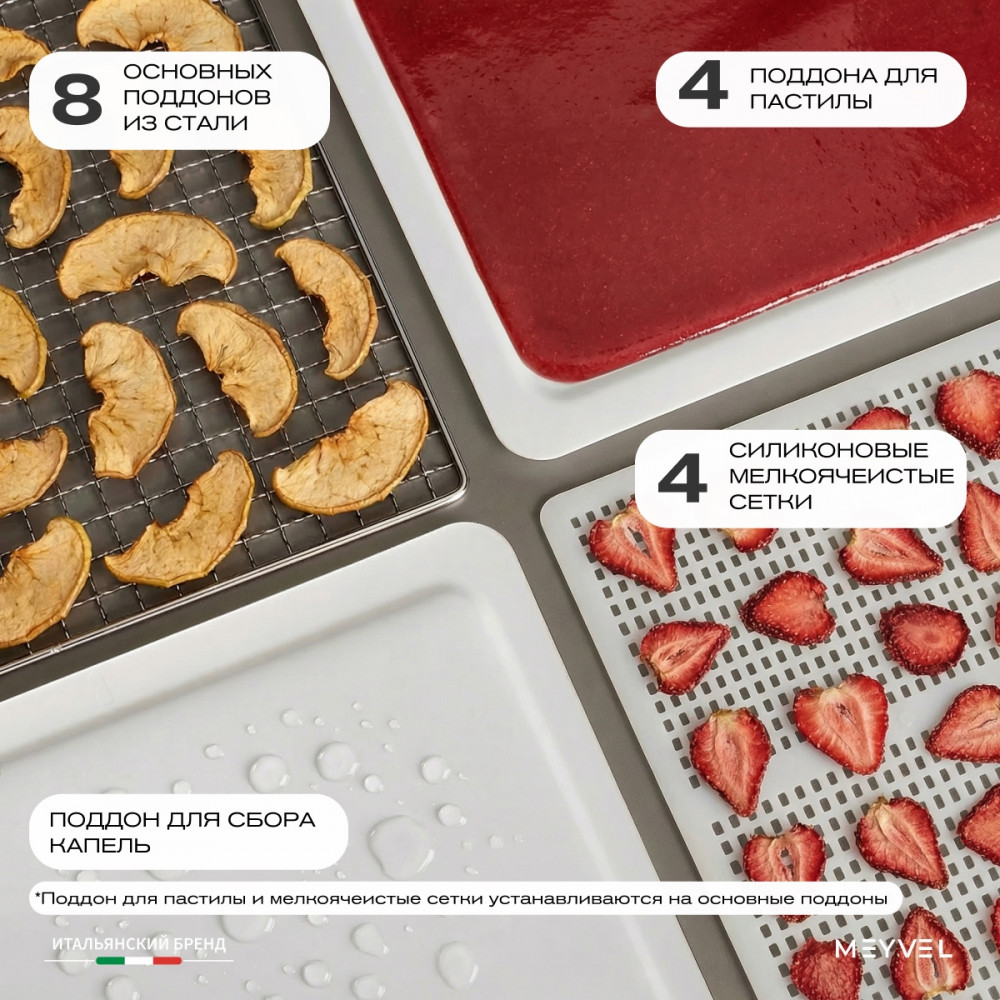 - 4 поддона для пастилы для фруктового пюре;