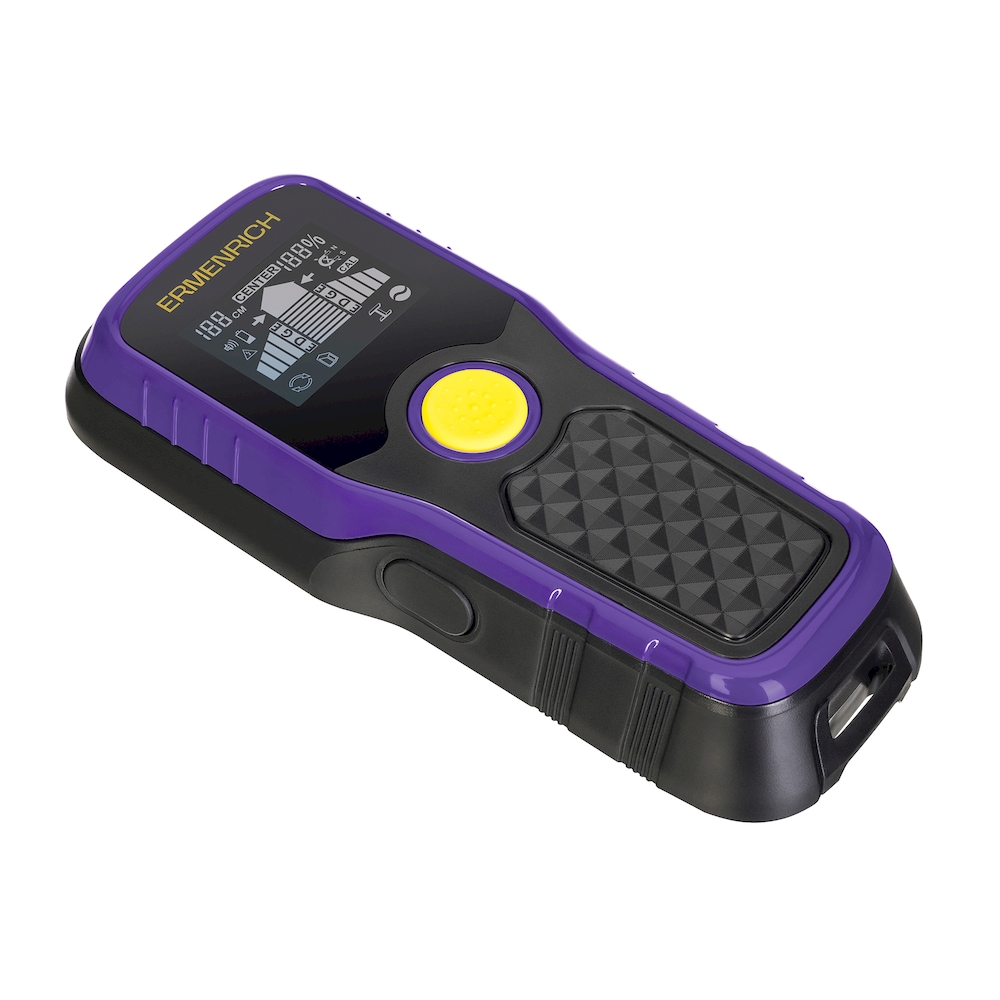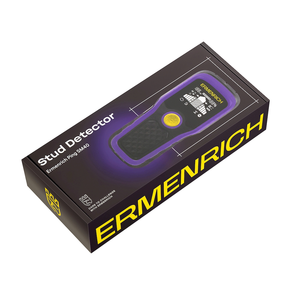 Ermenrich Ping SM40 — это надёжный и многофункциональный детектор скрытых элементов, разработанный для профессионального применения при строительных, ремонтных и монтажных работах. Его прочный корпус из ударо- и износостойкого ABS-пластика защищает внутреннюю электронику даже в условиях интенсивной эксплуатации. Прибор оснащён тремя режимами сканирования — для обнаружения деревянных и металлических конструкций, чёрных и цветных металлов, а также проводки под напряжением. Благодаря интеллектуальной системе автоматического выбора режима, устройство само определяет самый сильный сигнал и переключается на соответствующий режим, обеспечивая быструю адаптацию к текущей задаче без необходимости ручной настройки.