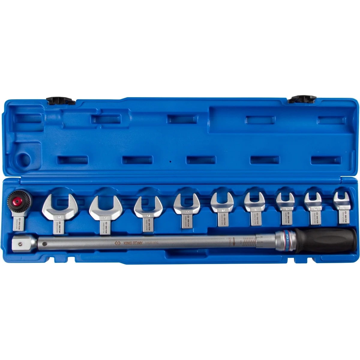 Динамометрический ключ KING TONY серии FIT 14х18 мм с набором рожковых насадок 13-30 мм, 60-340 Нм, кейс 345203D11MR