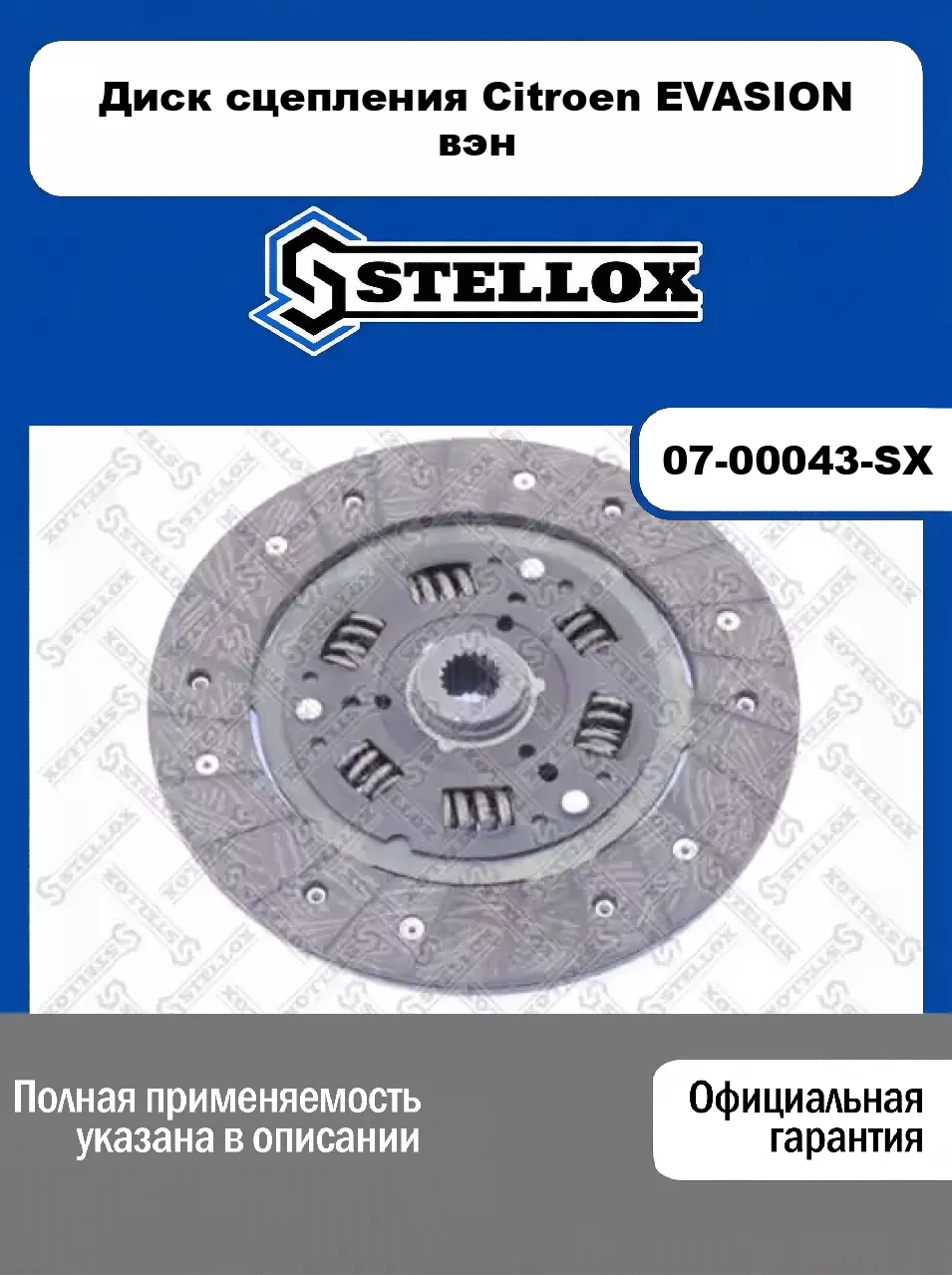 Диск сцепления Citroen EVASION вэн 07-00043-SX