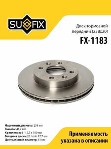 Диск тормозной передний (238x20) SUFIX FX-1183