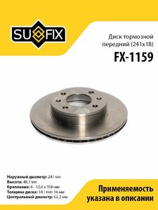 Диск тормозной передний (241x18) SUFIX FX-1159