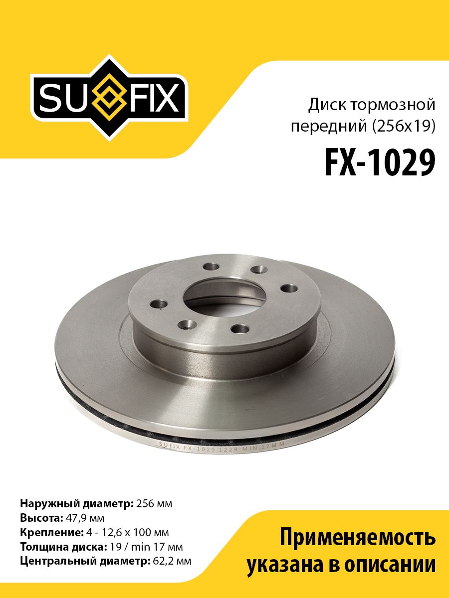 Диск тормозной передний (256x19) SUFIX FX-1029