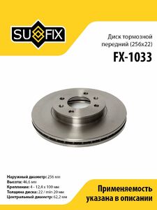 Диск тормозной передний (256x22) SUFIX FX-1033