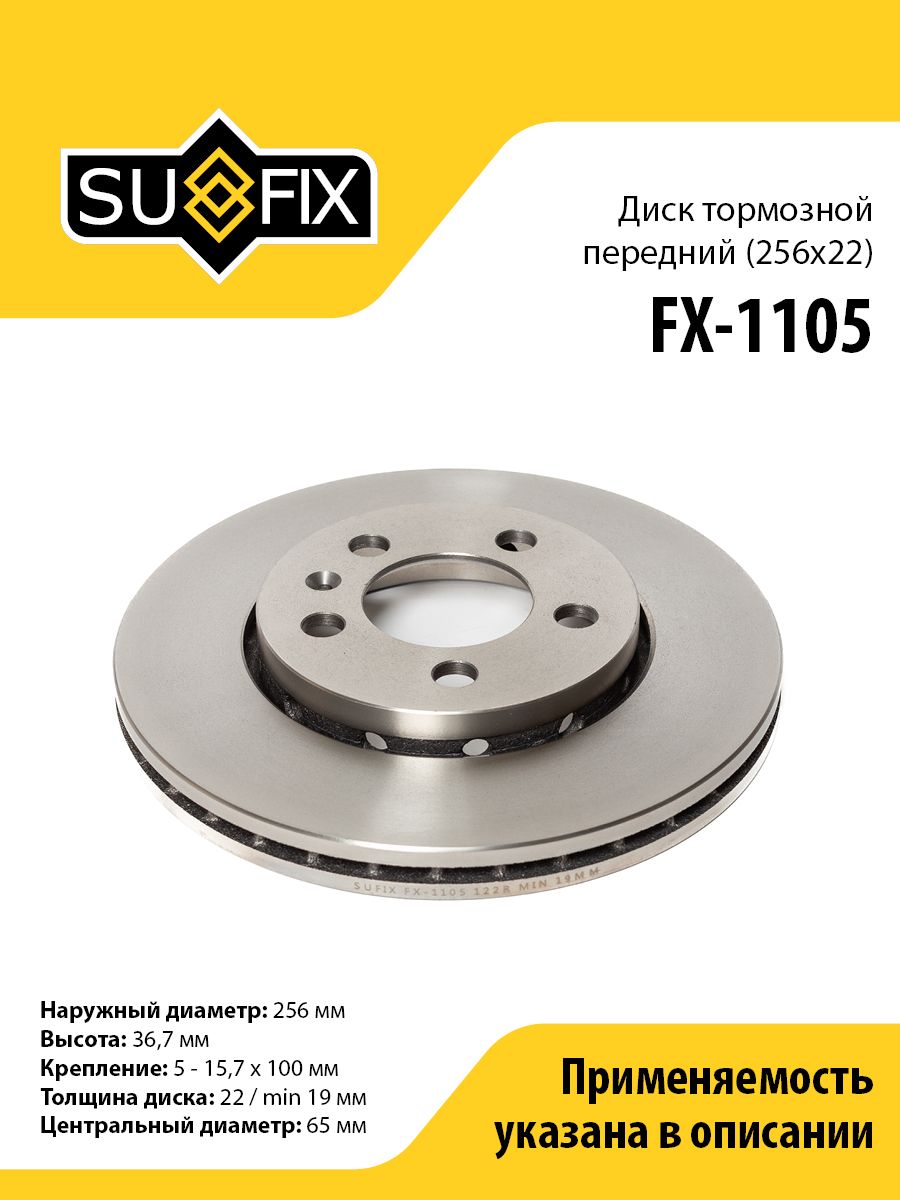 Диск тормозной передний (256x22) SUFIX FX-1105