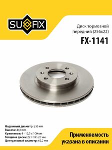 Диск тормозной передний (256x22) SUFIX FX-1141