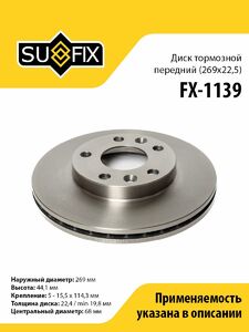 Диск тормозной передний (269x22,5) SUFIX FX-1139