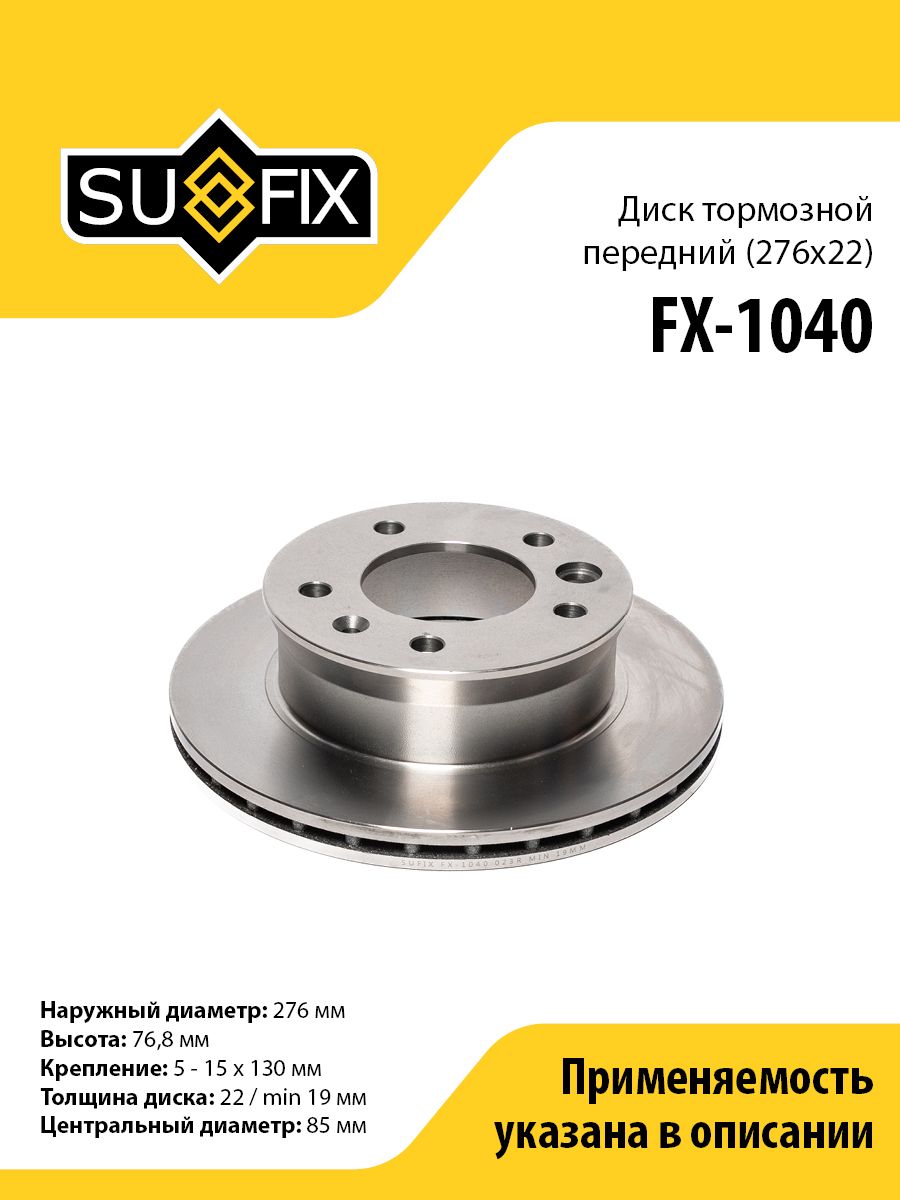 Диск тормозной передний (276x22) SUFIX FX-1040